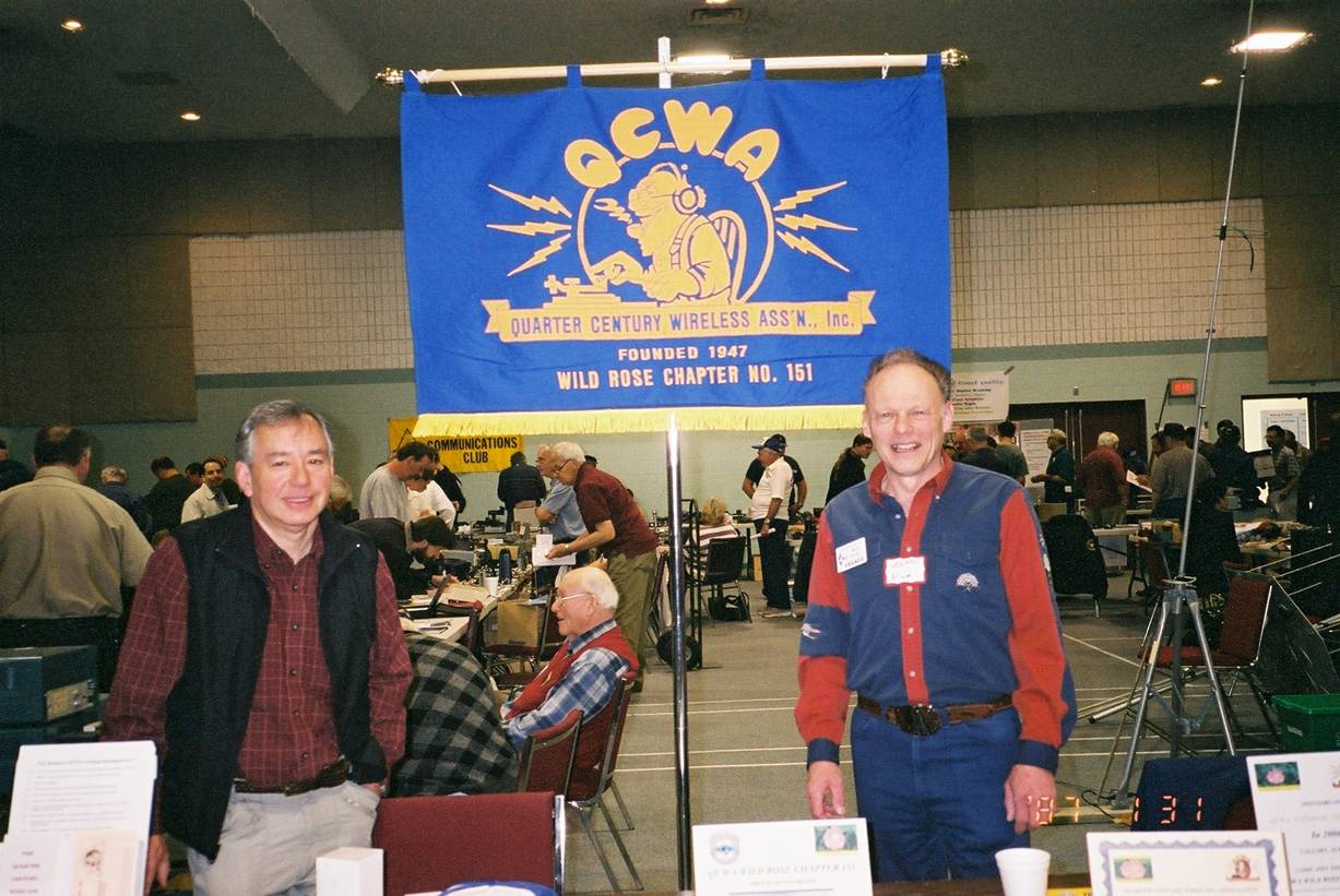 Ken Oelke, VE6AFO, our president attended the Calgary area Flea Market looking for new members. Attached is a photo of Ken at his QCWA display with a ham applying for membership.