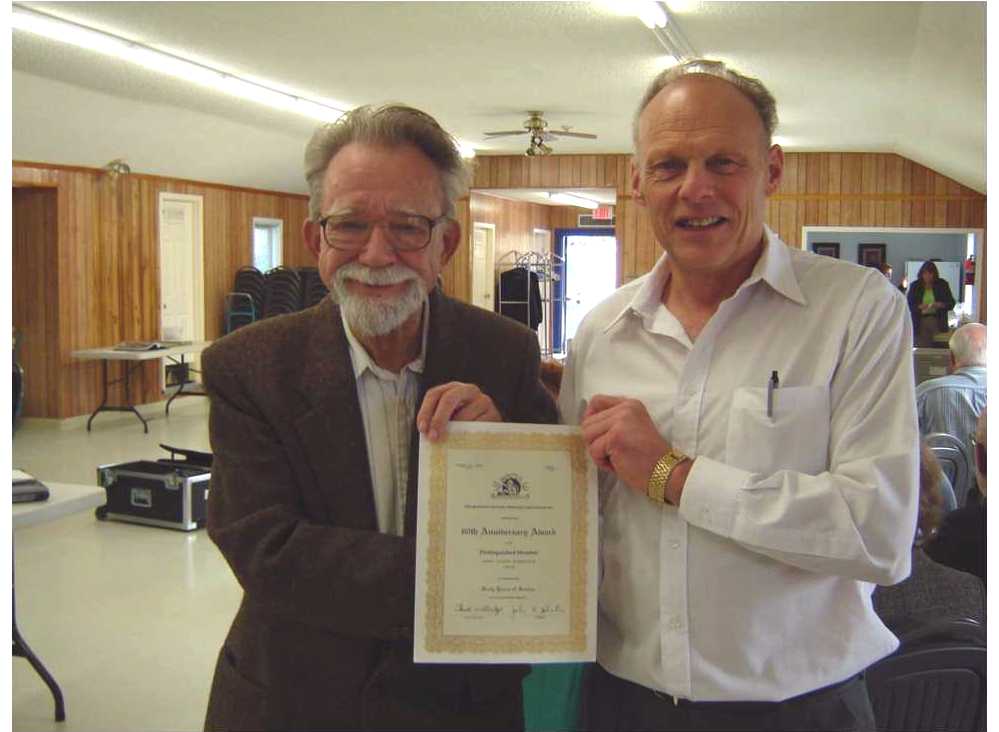 Left - Grant Heimbecker, VE6GH presented with his 60 Year Award by Chapter 151 President Ken Oelke, VE6AFO