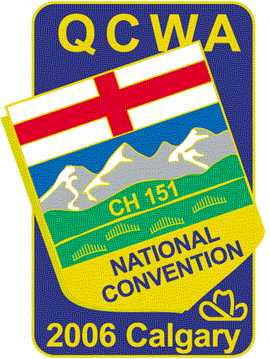 5. The committee adopted a QCWA Convention - 2006 logo (see below) that will be available in a lapel pin. Only 200 pins have be ordered and should be available in early January, 2005. These are expected to move fast and pricing is $5.00 for each lapel pin. If you wish to receive yours now, send $5.00 for each pin plus $2.00 mailing charges to mail in Canada and $2.50 mailing charges to mail in the USA. The mailing charges are for mailing up to 10 pins in one envelope. If you wish to reserve your pin and pickup at convention time, just mail $5.00 and the committee will have your pin(s) available at the registration desk. Make Cheque or Money Order payable to "QCWA National Convention - 2006" and mail to Jack Ambler, VE6CAQ at 9994 Hidden Valley Drive NE, Calgary, AB T3A 5G3.